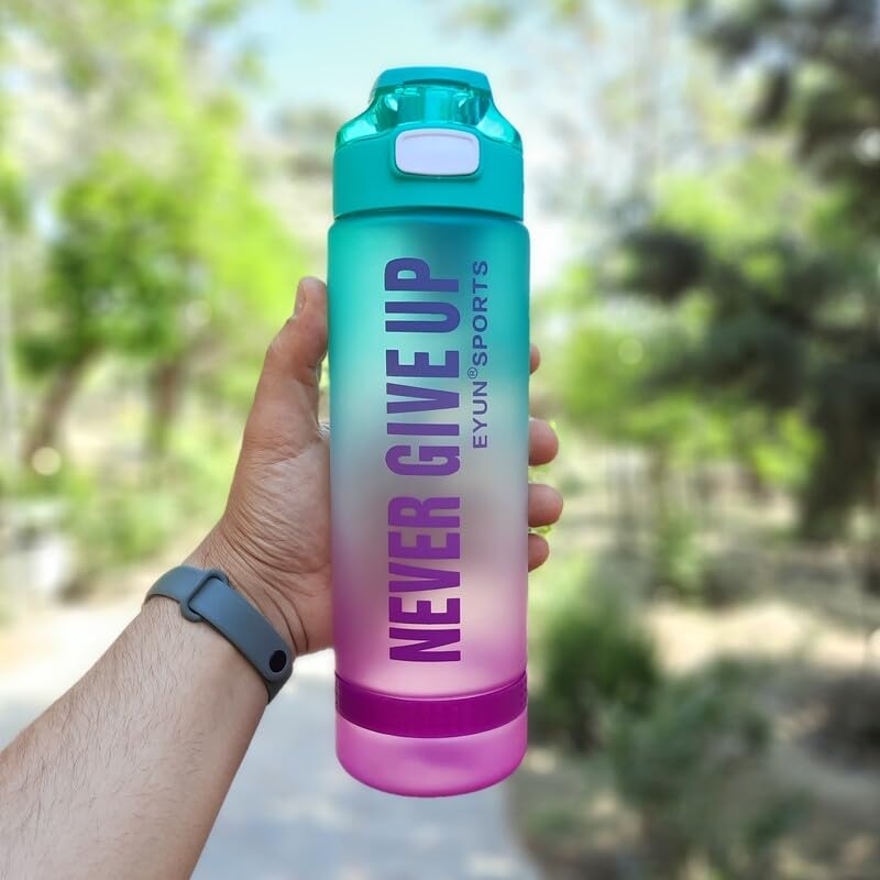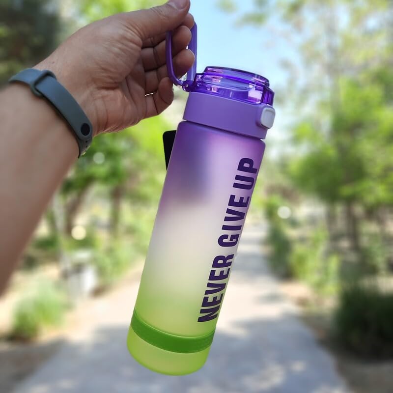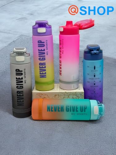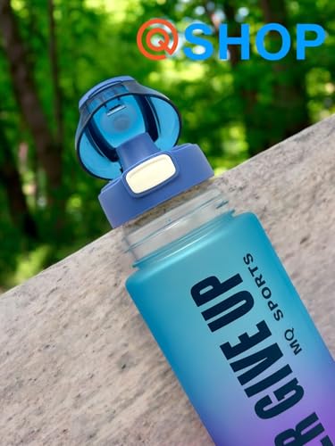 Qshop - QSHOPNaver Give Up Motivational Sports Water Bottle Leak Proof Portable Drinking Bottle for Gym Fitness with Straw and Strap, BPA Free (1000ml) (Purple)