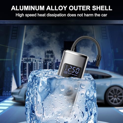 - 【2X Fast Inflating Portable Air Pump】- The tire inflator features150psi high-efficiency motor,which can inflate tires 2X faster with 35L/Min of airflow. After fully charged, it can inflate 205/50 R16 car tires from 28 to 36 Psi under 2 minutes.This tire pump suitable for daily use or emergencies,equipped with multiple attachments and the upgraded air hose isolates heat generated during operation.