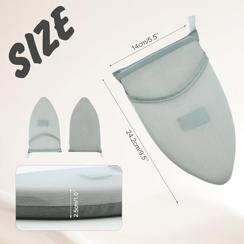 - Steam ironing mitt sizes approximately 9.5 x 5.5 x 1.0". One size fits most, and it is easy to wear with either right hand or left hand. A hook at the edge for easy hanging and storage.