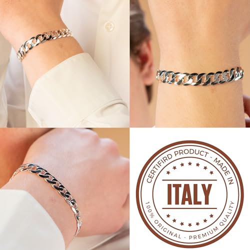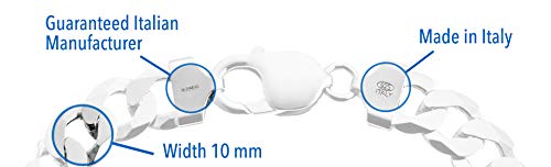 QUADRI - كوادري - سوار بحلقات كوبية لامعة للغاية للرجال 10 ملم و12 ملم من الفضة الاسترلينية عيار 925 على شكل الماس الايطالي - 7.5 الى 9 انش - جودة ممتازة - صندوق هدايا متضمن