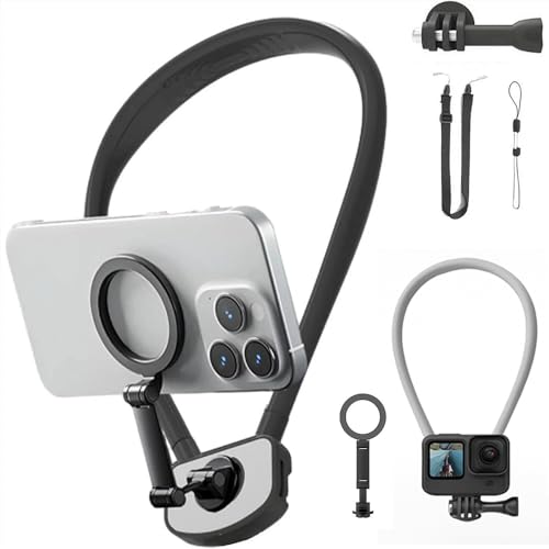 Quality Valley - Quality Valley Magnetic Neck POV Mount for Mobile Phone | Mag-Safe Compatible Cell Phone Neck Holder Vlog Selfie Mount Hand Free Chest Stand for iPhone 15 14 13 12 Series Android (black)