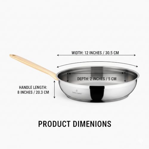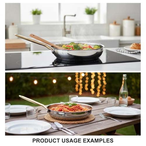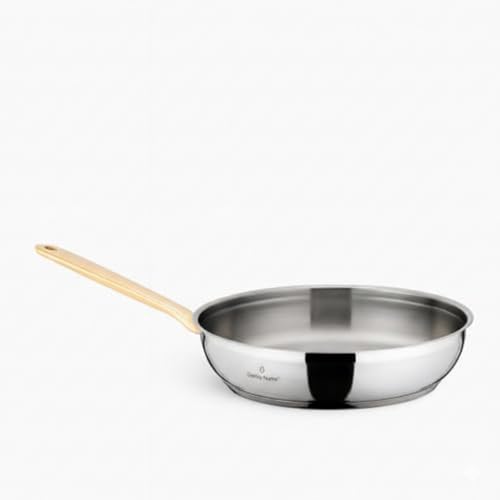 - مقلاة متينة من الستانلس ستيل مقاس 20 سم بلمسة نهائية ذهبية تضمن تسخينًا متساويًا، مثالية للطهي اليومي بلمسة من الأناقة.