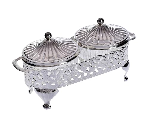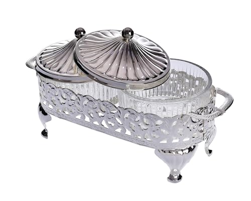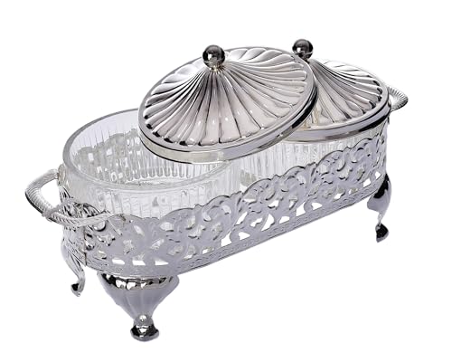 Queen Anne - Queen Anne Round Appetizer Serving Platter Dual silver plated (2 lids + 2 glass plates) Royal" 0/4922/7
