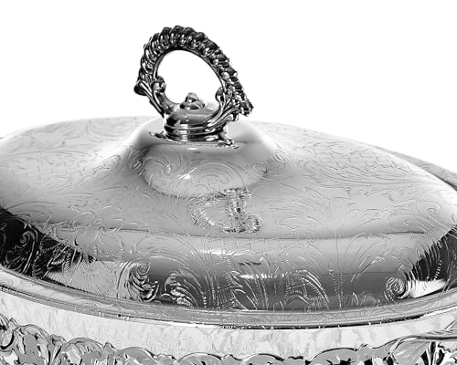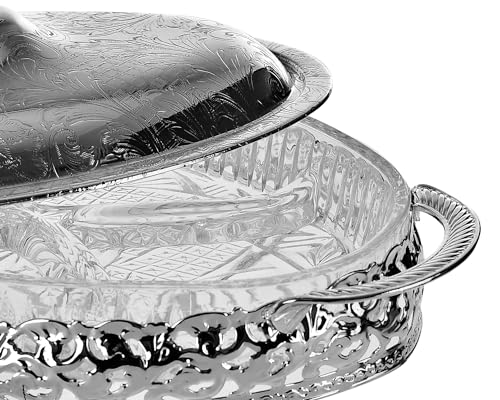 Queen Anne - طبق تقديم المقبلات بيضاوي مطلي بالفضة وطبق زجاج مقسم إلى 4 أجزاء من كوين ان، (اوردفر) مع غطاء ملكي 60/6205/7