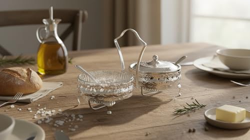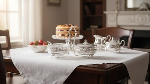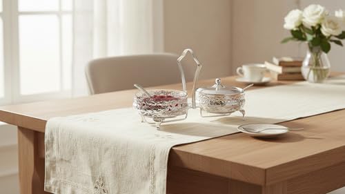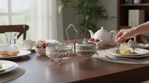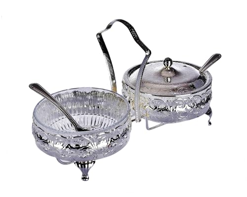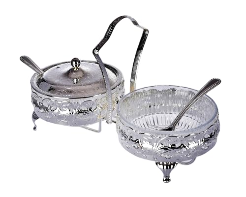 Queen Anne - طبق تقديم مربى دائري مطلي بالفضة مع حامل (ملعقتان + غطاءين + طبقين زجاجيين) رويال من كوين ان 0/4332/7