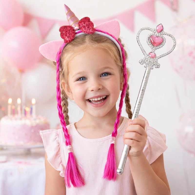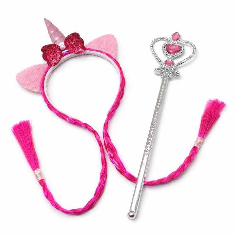 Generic - مجموعة اكسسوارات لزي ملكه للبنات، يونيكورن مع تاج وعصا وشعر اميرات للحفلات التنكرية واعياد الميلاد