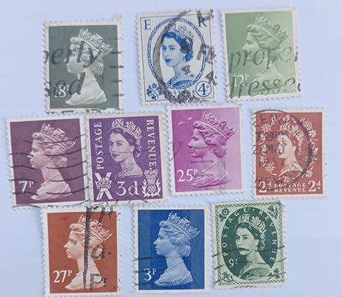 Generic - Queen Elizabeth II British Postage Stamp Set of 10 Unique Assorted