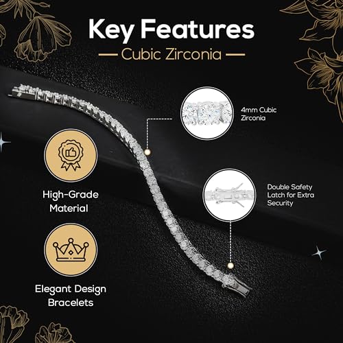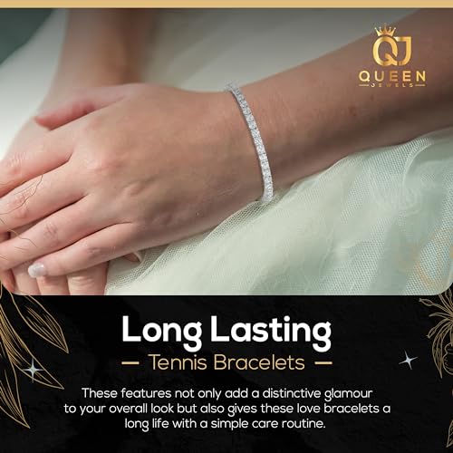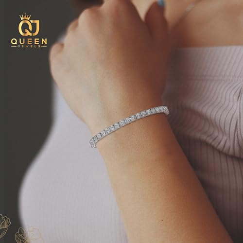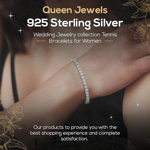 Queen Jewels - Queen Jewels 925 Sterling Silver Bracelets for Women | Cubic Zirconia Tennis Bracelets for Women | 14k Gold Jewelry for Women | Silver Jewelry Bangle Bracelets for Women | Tennis Sterling Silver