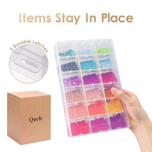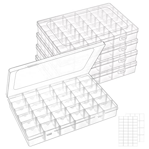 QUEFE - QUEFE 5 Pack 36 Grids Clear Plastic Organizer Storage Box Container, Craft Storage with Adjustable Dividers for Beads, Art DIY, Crafts, Jewelry, Fishing Tackle with Label Stickers
