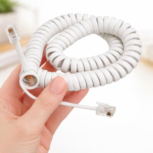 QUEST كويست - سلك سماعة الهاتف ار جيه 9 بطول 6.6 قدم من كويست، كيبل ملفوف حلزوني ذكر الى ذكر، سلك بديل متين للجوالات المكتبية، ملحقات الهاتف للمكتب والمنزل