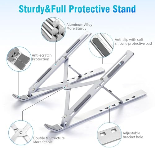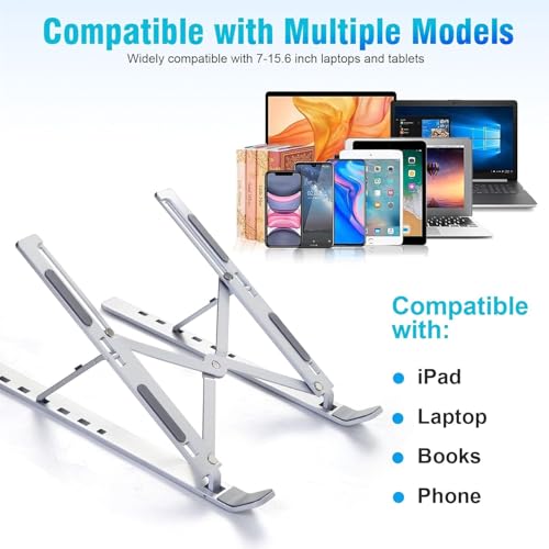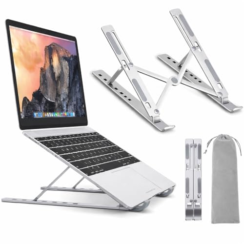 QUEST كويست - حامل لاب توب محمول من الألومنيوم من كويست - حامل مريح قابل للطي والتعديل للمكتب متوافق مع أجهزة اللاب توب والتابلت (فضي)
