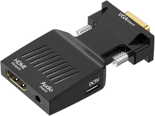 QUEST كويست - QUEST Terabyte VGA to HDMI Adapter/Converter with Audio, Male VGA to HDMI Video Adapter for PC, Projector with Audio, Power Cable -D-Sub, 15-pin
