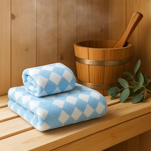 Generic - طقم بشكير + فوطة مايكروفايبر – امتصاص عالي وسريعة الجفاف – مضادة للوبر – للحمام والسبا والسفر – قابلة للغسل وإعادة الاستخدام (لبني)