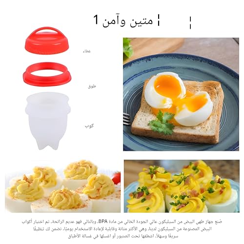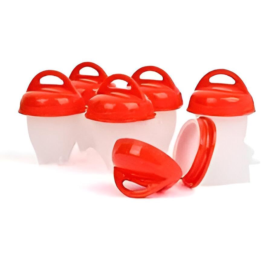Generic - Quick Egg Cooker Set - 6 Non-Stick Silicone Cups for Perfect Peel-Free Eggs, Ideal for Daily Breakfast, White Balloon Style with Red Cap