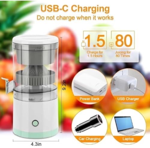 - 𝗪𝗜𝗥𝗘𝗟𝗘𝗦𝗦 & 𝗣𝗢𝗥𝗧𝗔𝗕𝗟𝗘 𝗗𝗘𝗦𝗜𝗚𝗡: The Orange juicer Uses USB-C Technology for Charging. Take Our rechargeable citrus juicer to the Outdoor Camp and don't worry about Running out of Power. Enjoy Delicious Juice Anytime and Anywhere with One Click.