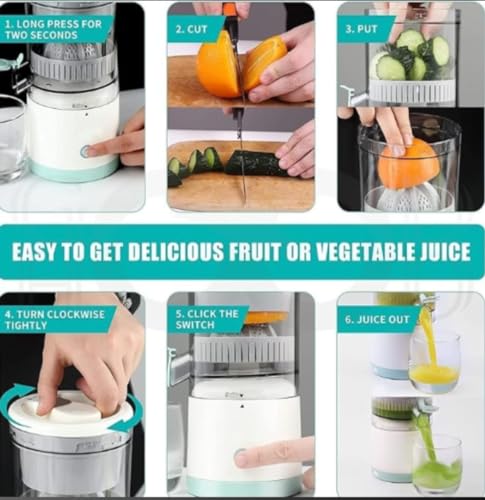 - 𝗘𝗔𝗦𝗬 𝗧𝗢 𝗨𝗦𝗘 & 𝗖𝗟𝗘𝗔𝗡: The citrus juicer is Assembled in Several Parts, All Detachable for Easy Separation and Cleaning. Wireless portable juicer is Equipped with a Brush to Help Clean. But Please do not Wash the Main Body, It's Recommended to Wipe it with a Wet Cloth, Other Parts Can be Washed by Hand.