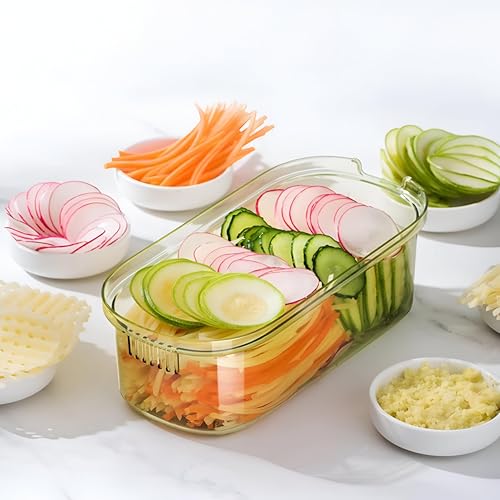 - This multifunctional vegetable slicer offers diverse cutting options, including wavy and fine blades, allowing users to create thick slices, thin shreds, and precise dices for potatoes, tomatoes, carrots, cucumbers, and more — perfect for salads, baking, and meal prep with enhanced culinary creativity.