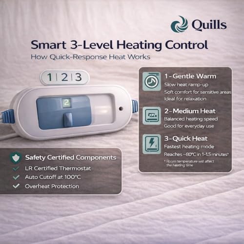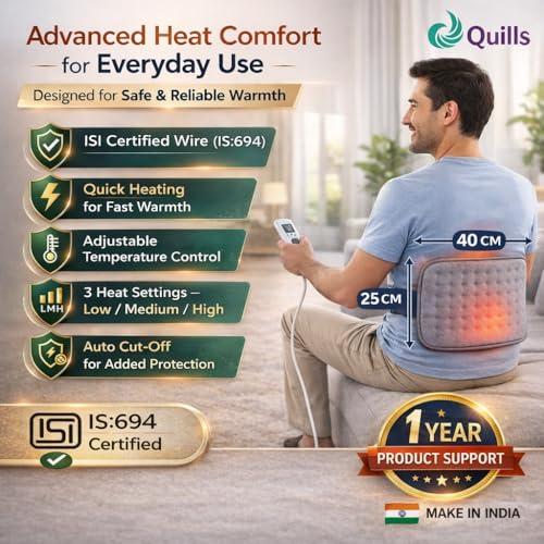 - Extended Product Support & Safe Usage: Quills electric heating pad for back pain and heatpad come with extended support coverage Includes up to 12 months of manufacturer support for peace of mind. Built-in safety features like automatic shut-off ensure safe operation, while this hot belt for pain relief and electric belt for back pain provide consistent, reliable comfort every time you use it.