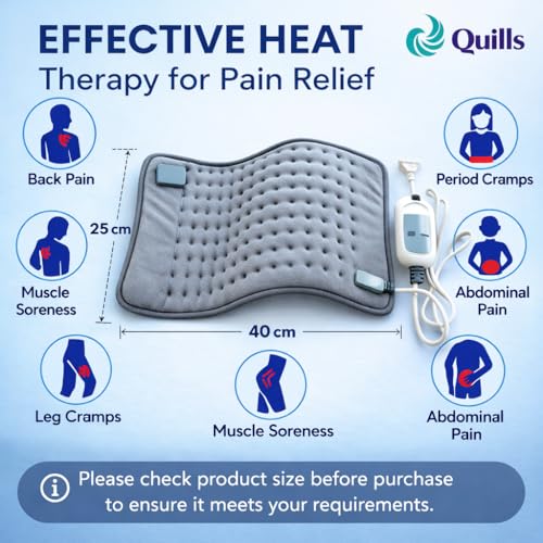 Quills - Quills premium Electric Heating Pad for Pain Relief (40cm x 25cm) Heat Pad for Back, Neck, Shoulder, Knee & Cramps – Adjustable Temperature Heat belt for Safe & Effective Pain Relief