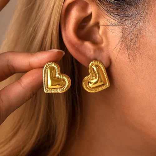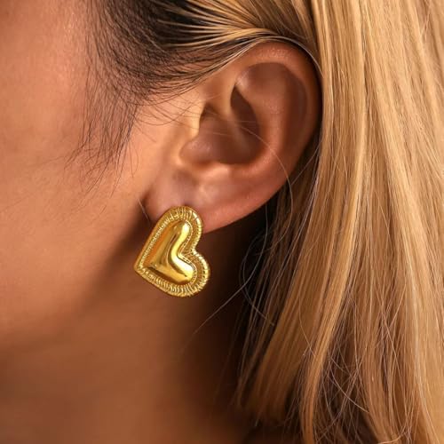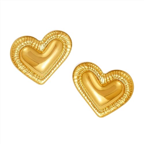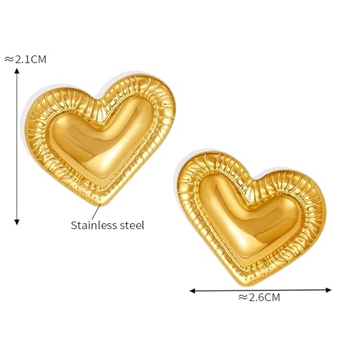 Generic - Quilt Style Heart Stainless Steel Earrings For Women Waterproof Gold Plated Texture Luxury Ear Stud Daily Jewelry Gift