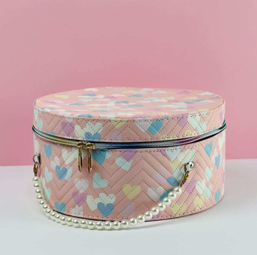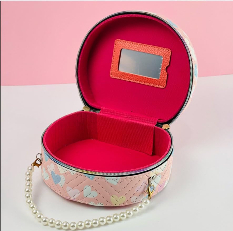 - ELEGANT DESIGN: Beautiful quilted heart pattern in pastel pink with decorative pearl handle, featuring gold-tone zipper hardware and luxurious pink interior lining