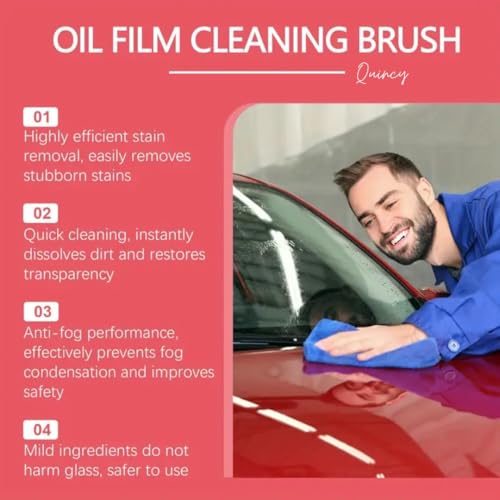 - 【سهل التنظيف】مع فرشاة سائلة مدمجة، فإن منظف غشاء زيت زجاج السيارة الخاص بنا يجعل من السهل حمل وتنظيف تلك الزوايا التي يصعب الوصول إليها. استمتع بتجربة قيادة السيارة بدون متاعب وواضحة للغاية.