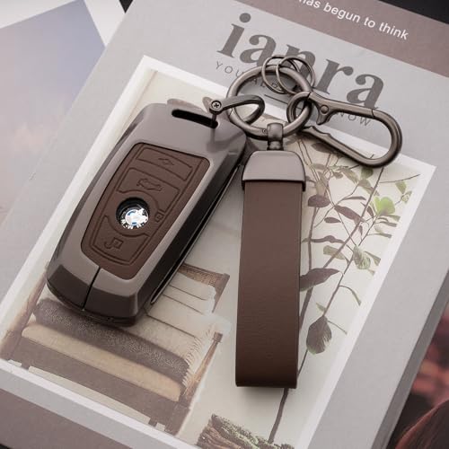 Qunzes - غطاء مفتاح فوب مع سلسلة مفاتيح شديدة التحمل لسيارة بي ام دبليو 550i 530i 535i 520i 2009-2016 من كونزيس