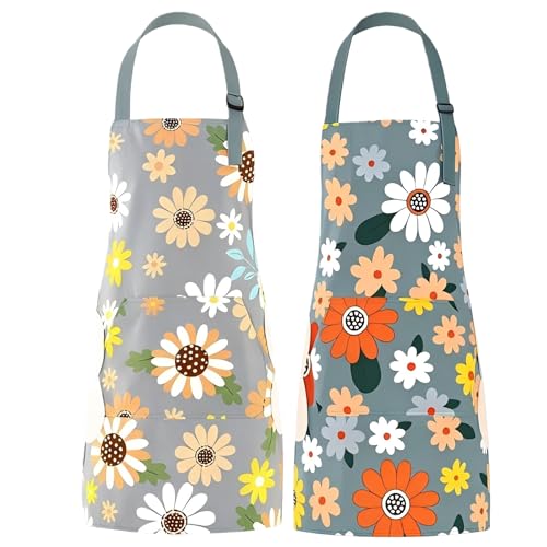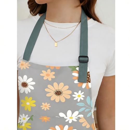QuQuRuan - مريلة بتصميم زهور من كيو كيو كيو روان مع جيوب مقاومة للماء والزيت، مريلة للنساء للطبخ والخبز والطلاء (2، زهرة)