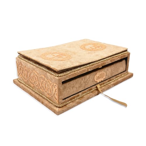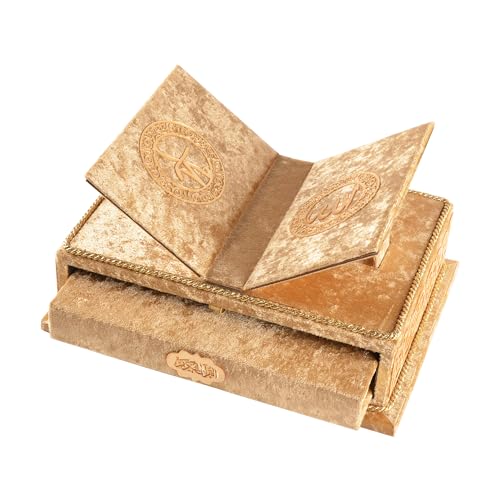 - Elegant Design: The Velvet-Covered Quran Set boasts a luxurious design with its entire surface covered in velvet, providing both aesthetic appeal and a sense of elegance.