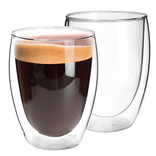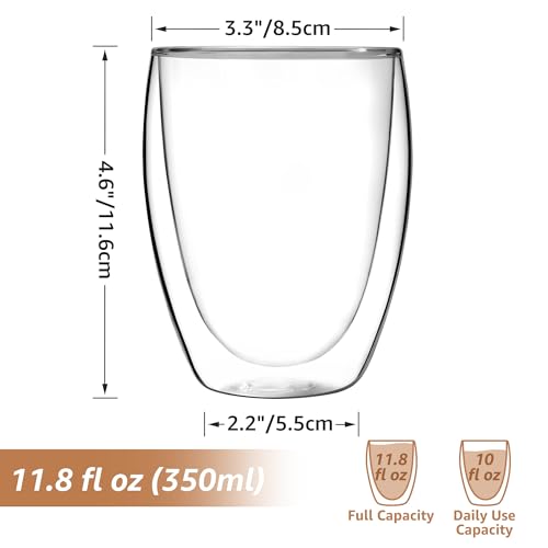 QUTREY - QUTREY 11oz Glass Coffee Mugs Set of 2, Double Wall Insulated Coffee Cups, Clear Drinking Glasses for Tea,Coffee,Latte,Milk,Juice