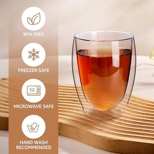 - Versatile Usage: Whether you prefer a hot cup of coffee or a refreshing iced tea, these glass coffee cups are suitable for various beverages.The double-walled design helps keep your beverages hot or cold for an extended period.