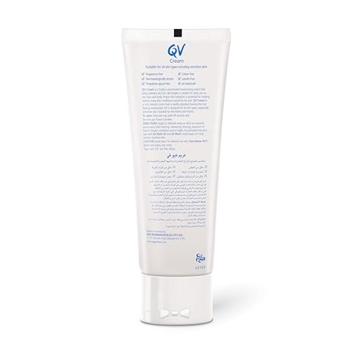 QV - QV Cream with 10% Glycerin (100g) Rich Protective Moisturiser for Sensitive, Dry Skin, Fragrance Free, Noncomedogenic Body Cream, Hydrating Skin Care for Eczema, Psoriasis, Dermatitis, Tube