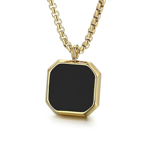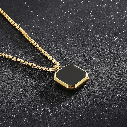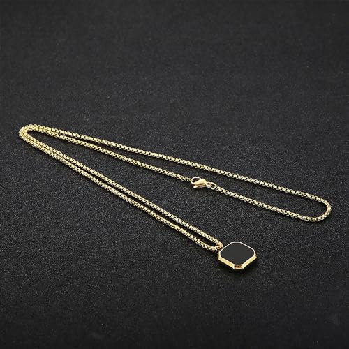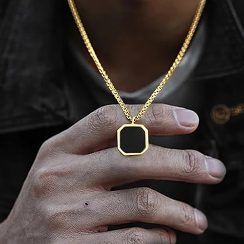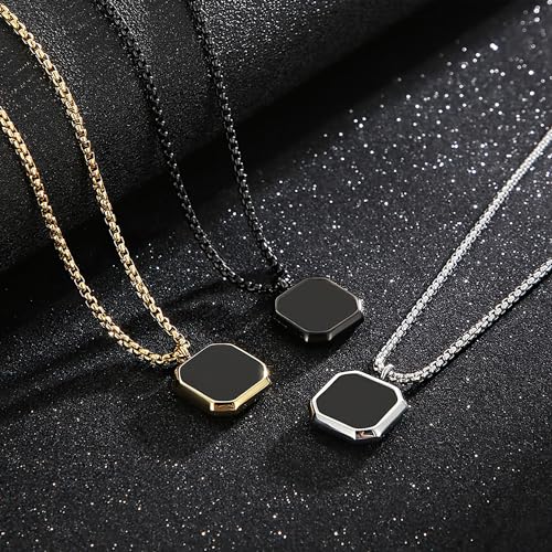 Qwonekou - Men's Necklace, Stainless Steel Necklace, Black Square Pendant Chain for Men, Jewelry Gift for Men and Teens – Fashion Jewelry