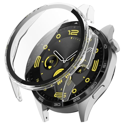 QWYJ - جراب من البولي كربونات مع شاشة حماية لساعة هواوي GT4 46 ملم من كيو دبليو واي جيه، شفاف، 46 ملم