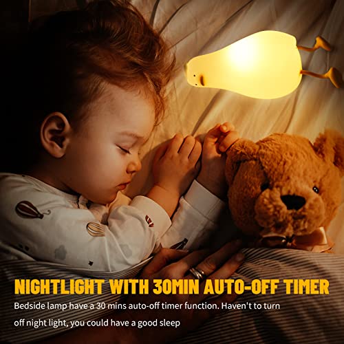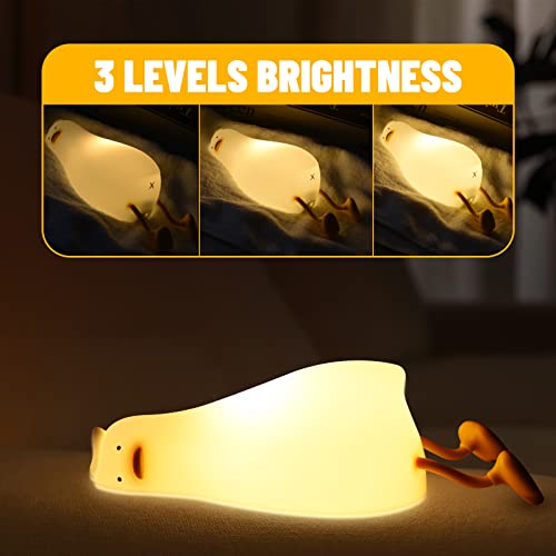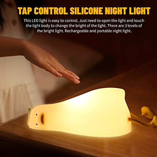 Happy Square - QXSLHW Lie in Peace Duck Night Light for Kids, Touch Baby Nursery Night Lamp with Timer, Portable Silicone Bedsides Lamp Room Decoration, Rechargeable Reading Lamp with Phone Holder