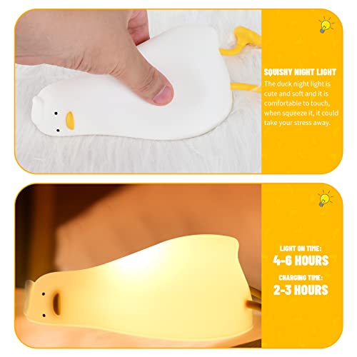 - 【Squishy Night Light】The lie in duck night light is cute and soft and it is comfortable to touch, when squeeze it, it could take your stress away.