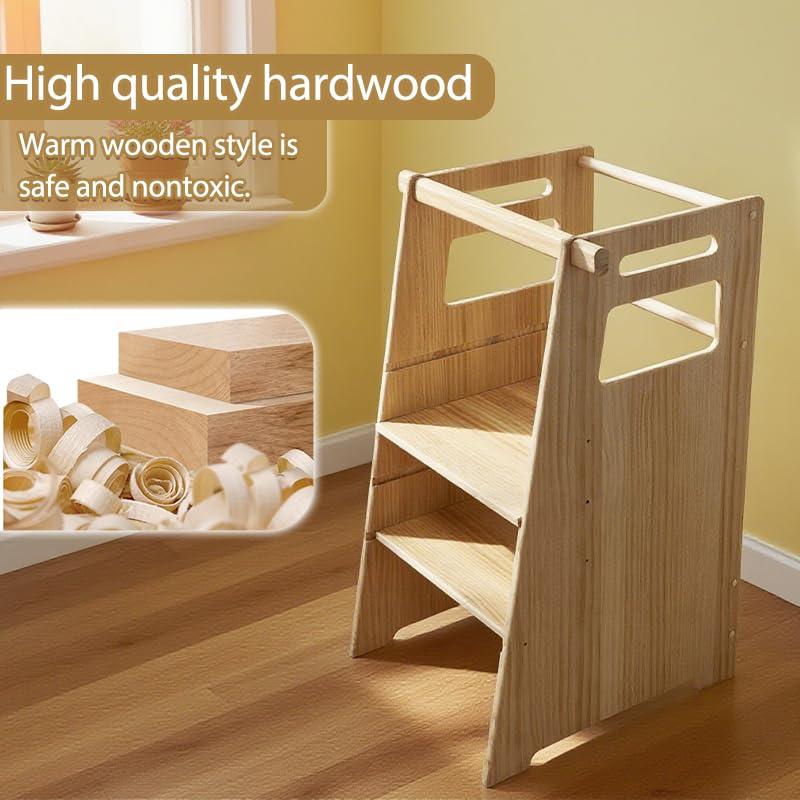 - SAFETY DESIGN: Features sturdy safety rails and an adjustable platform height to keep toddlers secure while standing and reaching countertops
