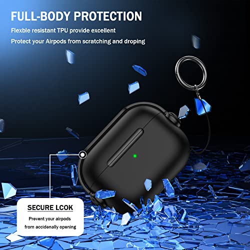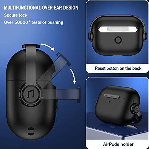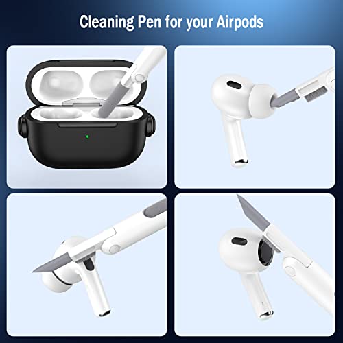 R-fun - R-fun AirPods Pro (2nd/1st Generation) Case, Music Headset Earphone Protective Case Cover with Secure Lock & Cleaning Kit Compatible with Apple Airpods Pro 2022/2019, Black