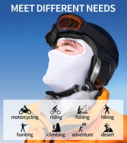 RABIGALA - رابيغالا قناع تزلج للرجال لكامل الوجه بالاكلافا، اقنعة تزلج سوداء تغطي الرقبة، ابيض، M