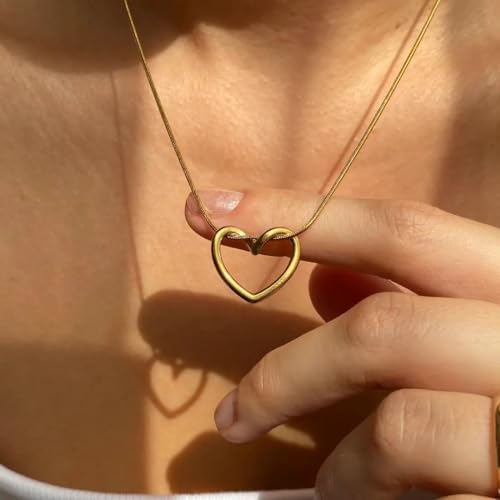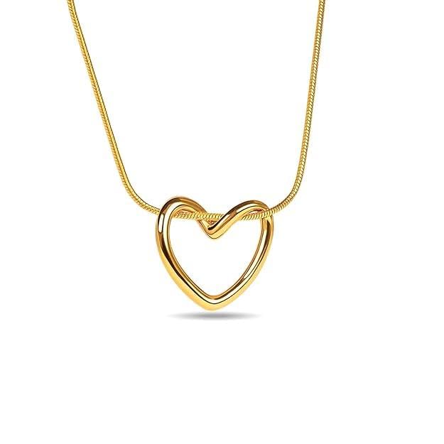 Generic - دلاية راديانت تشارم - قلادة ذهبية رائعة مع قلادة على شكل قلب مفتوح على سلسلة ثعبان مقاس 15 انش، تعطي مظهرًا لامعًا للمناسبات الكاجوال أو الأنيقة، مجوهرات مميزة للنساء.