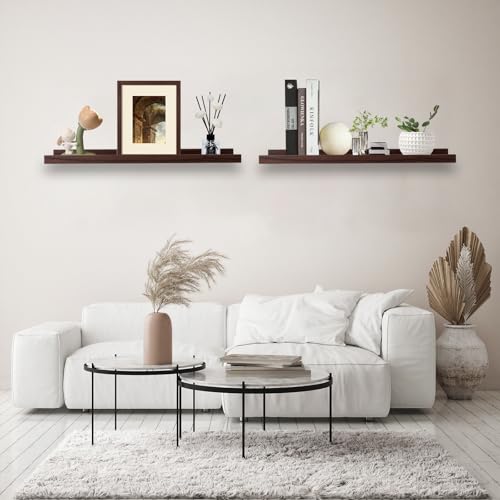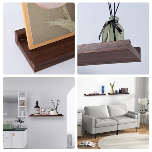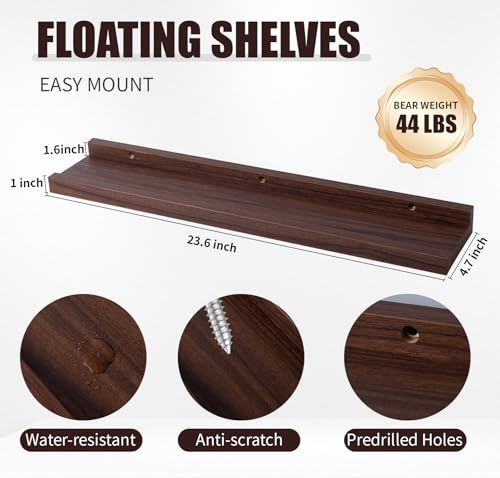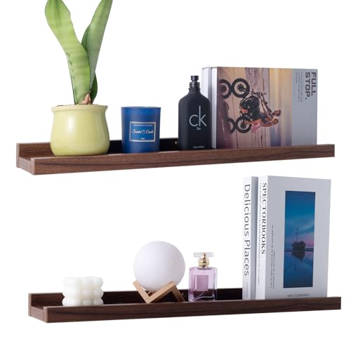 Rafecs - مجموعة ارفف عائمة من الخشب الصلب من رافيكس، 23.6 انش لديكور المنزل، رف عصري للصور لغرفة المعيشة وغرفة النوم والحضانة والحمام ورف الكتب والصور والنباتات، بني