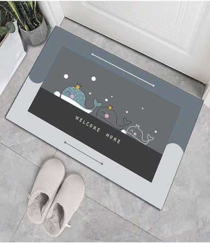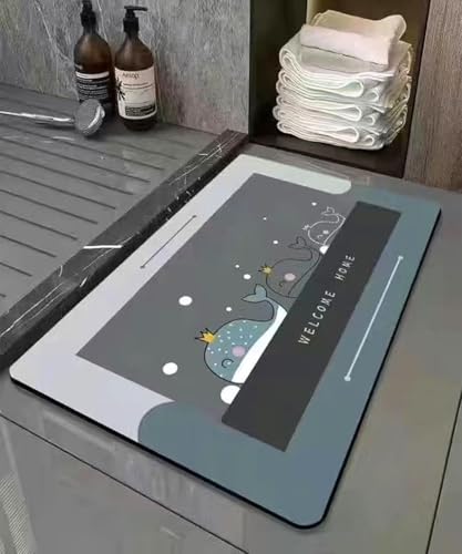 RAFFINE - RAFFINE Bath Mat Rug-Rubber Non Slip Quick Dry Super Absorbent Thin Bathroom Rugs Fit Under Door-Washable Bathroom Floor Mats-Shower Rug for in Front of Bathtub,Shower Room (Grey-Fish)