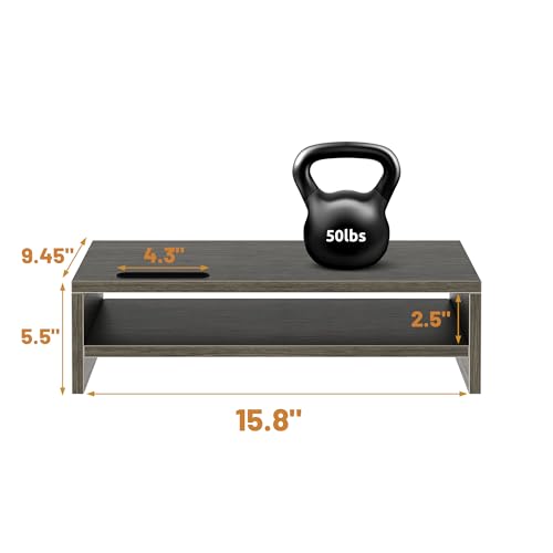 - 【Size & Weight Capacity & Multifunctional】 Computer monitor stand’s size is 15.8 "L X 9.45 "W X 5.5 "H (40 X 24 X 14 CM). Weight Capacity :50 Lbs. Computer desk organizer can be used in your office, living room, bedroom, study, classroom and conference room. Multifunctional desktop stand can be used as a computer/laptop/screen/TV/printer/fax machine stand