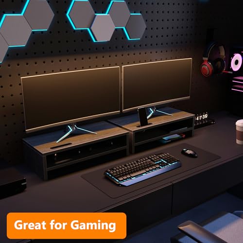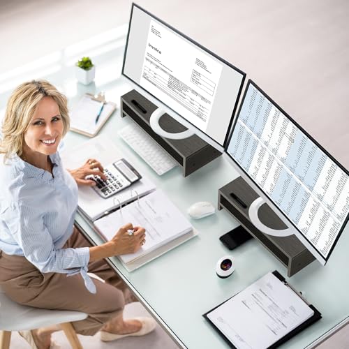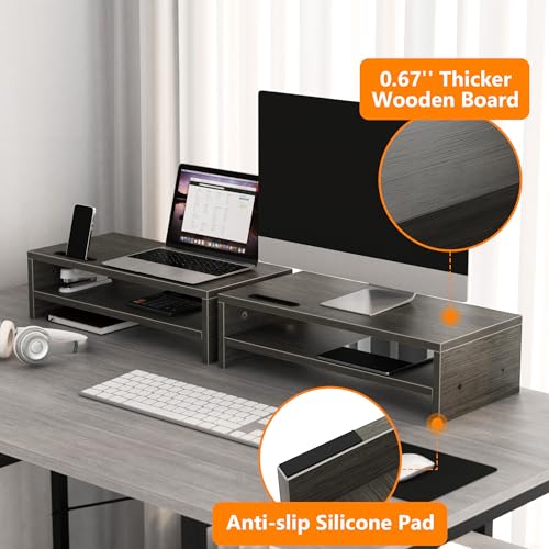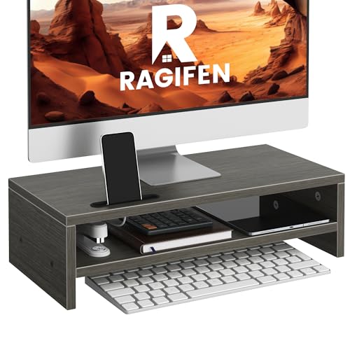 RAGIFEN - Wood Monitor Stand Riser, 2 Tier Stable Computer Monitor Riser for Desk Organizers, Anti-slip Laptop Riser Computer Monitor Shelf for PC Notebook Printer Computer iMac, Easy to Assemble, Gray