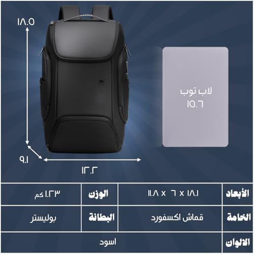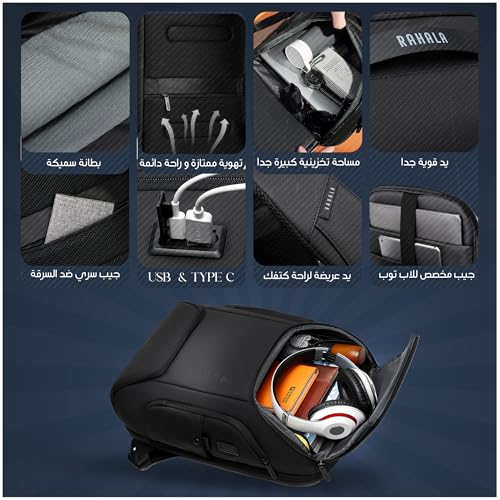 Rahala - Rahala Anti-theft Laptop Backpack 19L BNG126, Waterproof Backpack for Men Women Outdoor Laptop 15.6 Inches and with USB Port, Ideal for Office, Travel (Black)