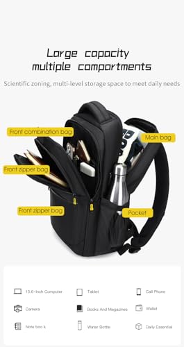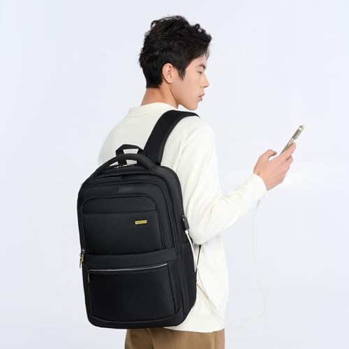 Rahala - Rahala Backpack for Men Women 15.6-inch Laptop Bag 15L Laptop Backpack Multi-pockets Water-resistant Padded With USB Port for Daily Office Travel College-43 * 13 * 28 CM RAL802-Black