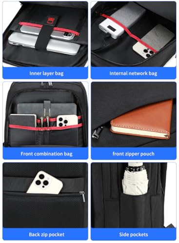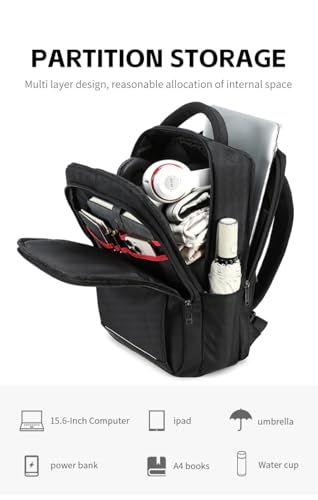Rahala - Rahala Business Backpack 20L, Waterproof 15.6-Inch Laptop Bag with USB Charging Port, Anti-Theft Multi-Pocket Lightweight Backpack for Men & Women – Ideal for Work, School & Travel – SH50- Black