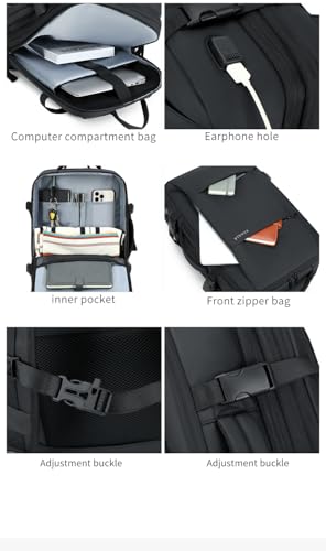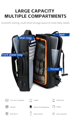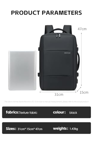 Rahala - RAHALA Expandable Waterproof Laptop Backpack – 35L, For Up to 17 Inch Laptop, USB Port & Multi-Compartments RAL135-Black
