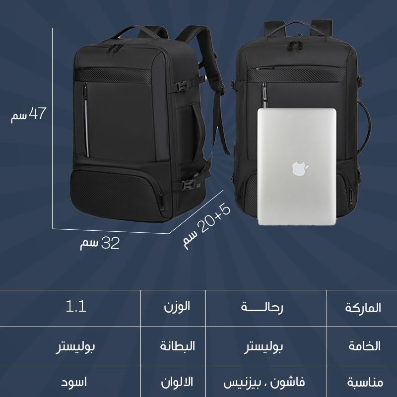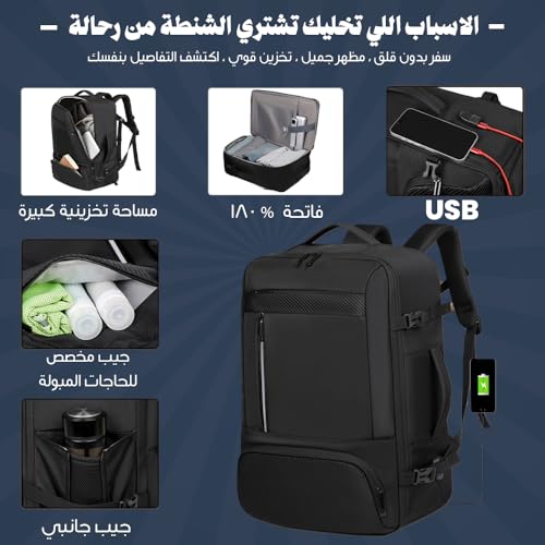 Rahala - Rahala Premium Anti-Theft Laptop Backpack with USB Charging Port – 37L Waterproof Travel & Business Computer Bag RAL2405-Black