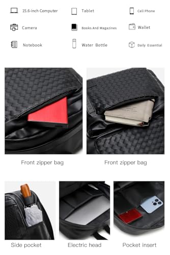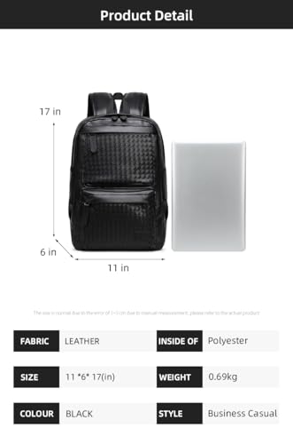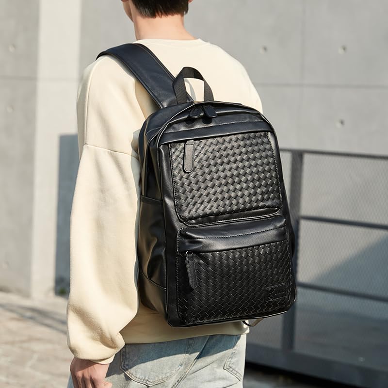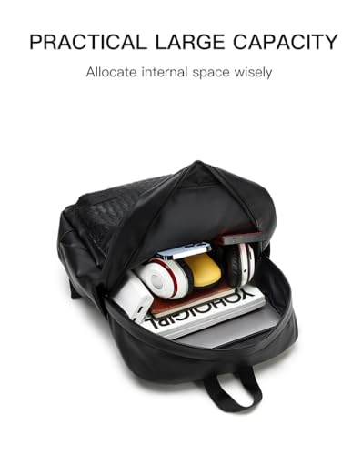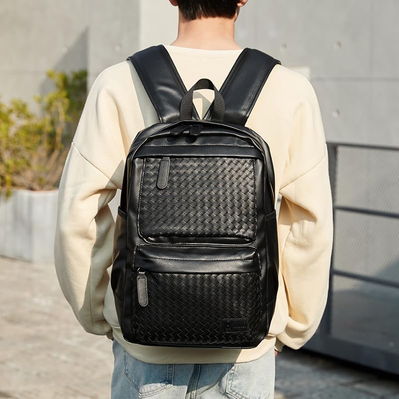 Rahala - Rahala PU Leather Backpack for Men Women 19L 15.6-inch Laptop Bag High Capacity Laptop Backpack for Office Travel College Daily Use -GLD116